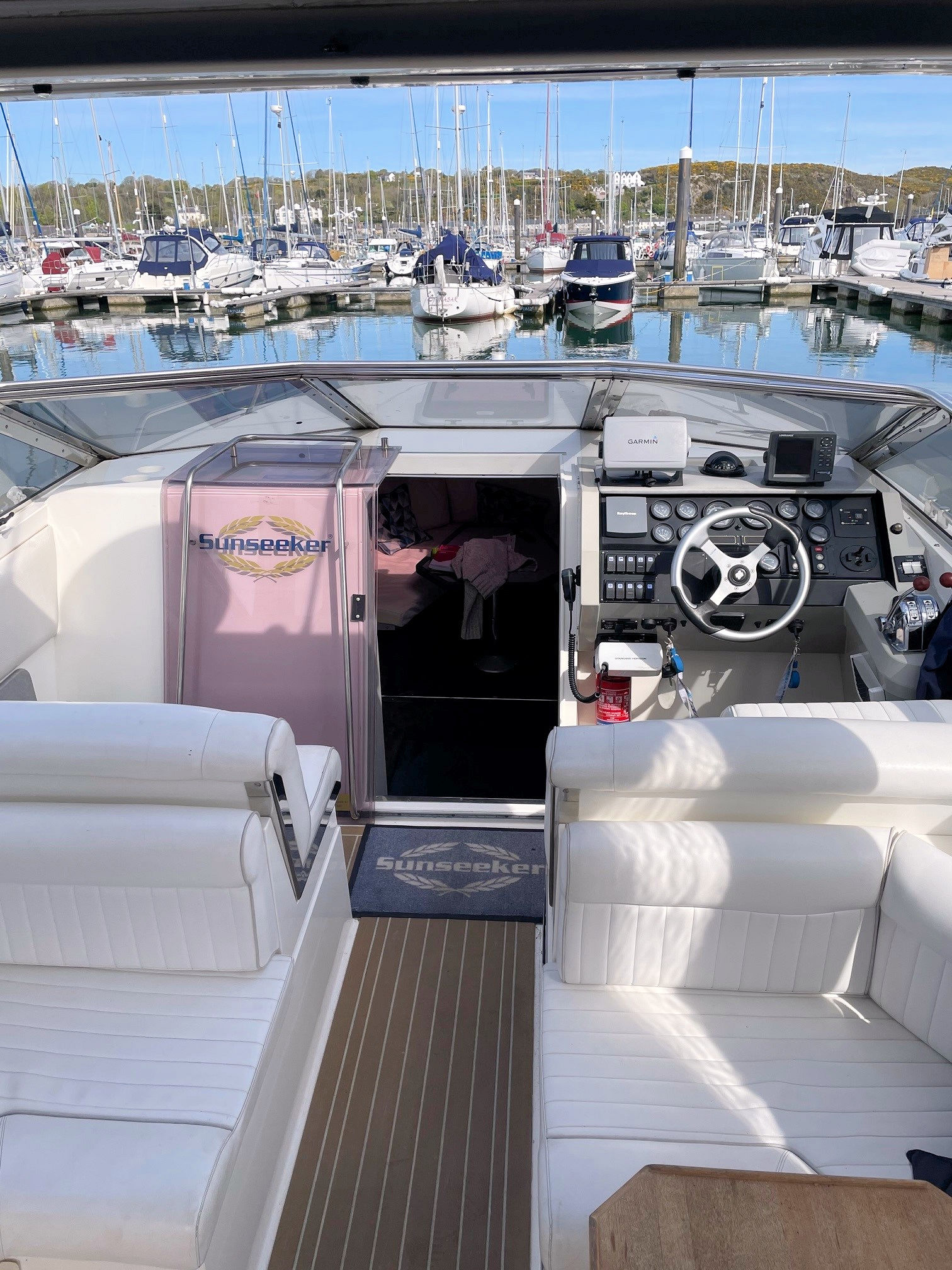 • Factory-fitted low bow rails and gold Sunseeker logos make her a genuine showboat