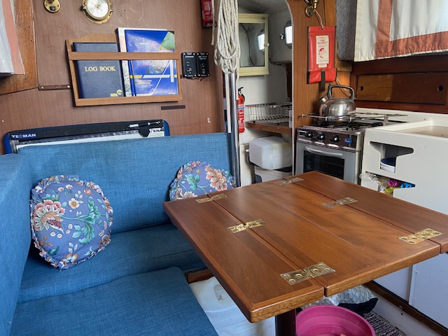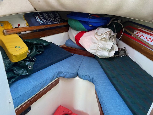 – 5 berths in the popular “B” layout, 2 berths are in the separate fore cabin, 2 quarter berths and 1 other in the main cabin. All bunks have been re-covered.